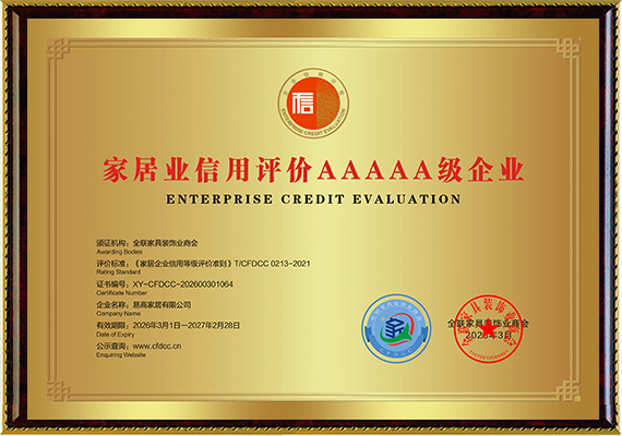 家居業(yè)信用評(píng)價(jià)AAAAA級(jí)企業(yè)2024-04-11